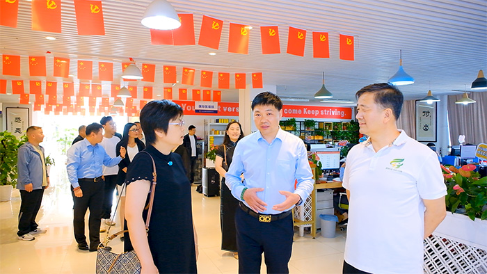 7月20日下午,九三學(xué)社河南省委常委、省生態(tài)環(huán)境廳委員會(huì)主委郜國(guó)玉,九三學(xué)社河南省科技廳委員會(huì)主委劉三軍,九三學(xué)社省生態(tài)環(huán)境廳委員會(huì)副主委、東區(qū)支社主委劉萍,九三學(xué)社河南省科技廳委員會(huì)副主委、五支社主委孟彩虹等一行蒞臨河南榮盛科技集團(tuán)調(diào)研指導(dǎo)工作。河南榮盛科技集團(tuán)董事長(zhǎng)楚科奇陪同調(diào)研。
