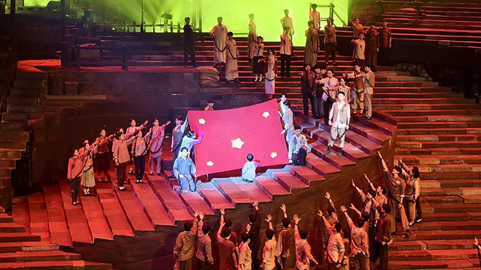 劇中,革命者在獄中得知新中國成立消息后,即便不知guoqi樣式仍共同繡制紅旗的場(chǎng)景,以及面對(duì)敵人威逼利誘堅(jiān)守初心的動(dòng)人情節(jié),讓現(xiàn)場(chǎng)眾人深受震撼、熱淚盈眶。70分鐘的演出,不僅是藝術(shù)的盛宴,更是精神的洗禮,讓大家在沉浸式體驗(yàn)中深化了對(duì)紅巖精神的理解,汲取了攻堅(jiān)克難、勇毅前行的精神力量 。